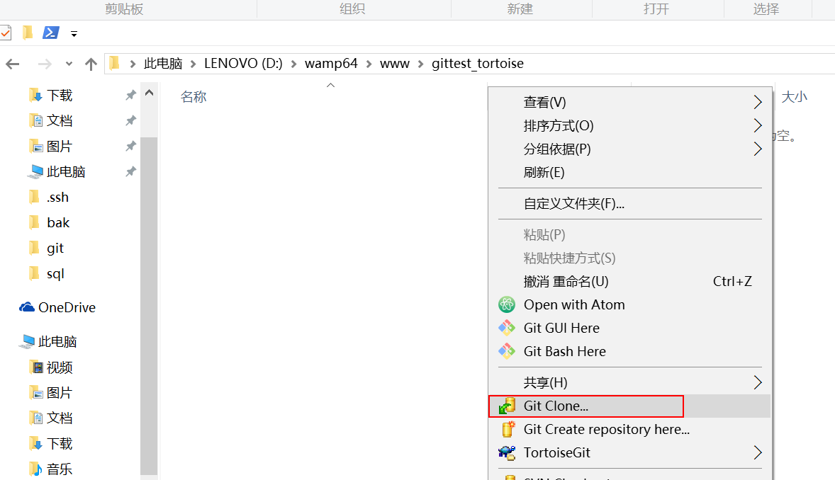 進(jìn)入 Git Bash 命令行客戶(hù)端,創(chuàng)建項(xiàng)目地址(設(shè)置在 d:/wamp64/www/gittest_gitbash)并進(jìn)入:
