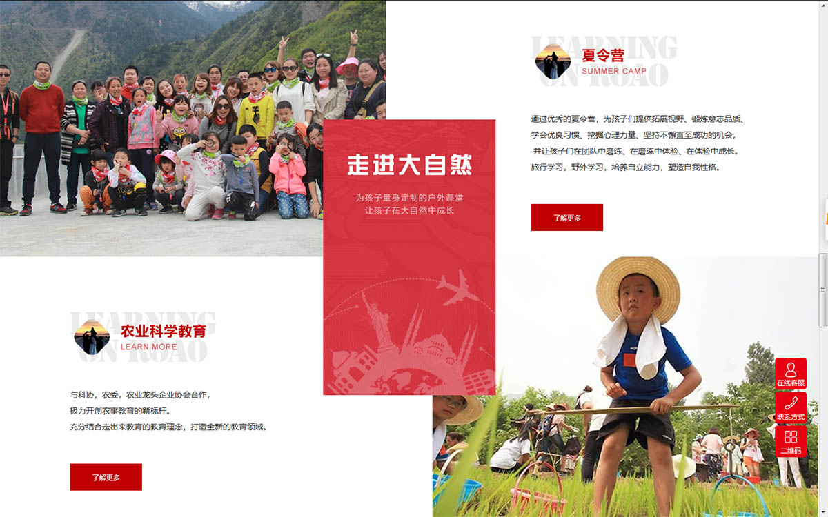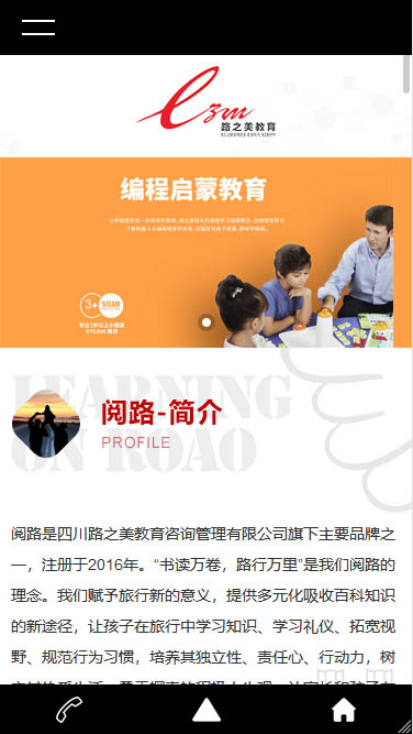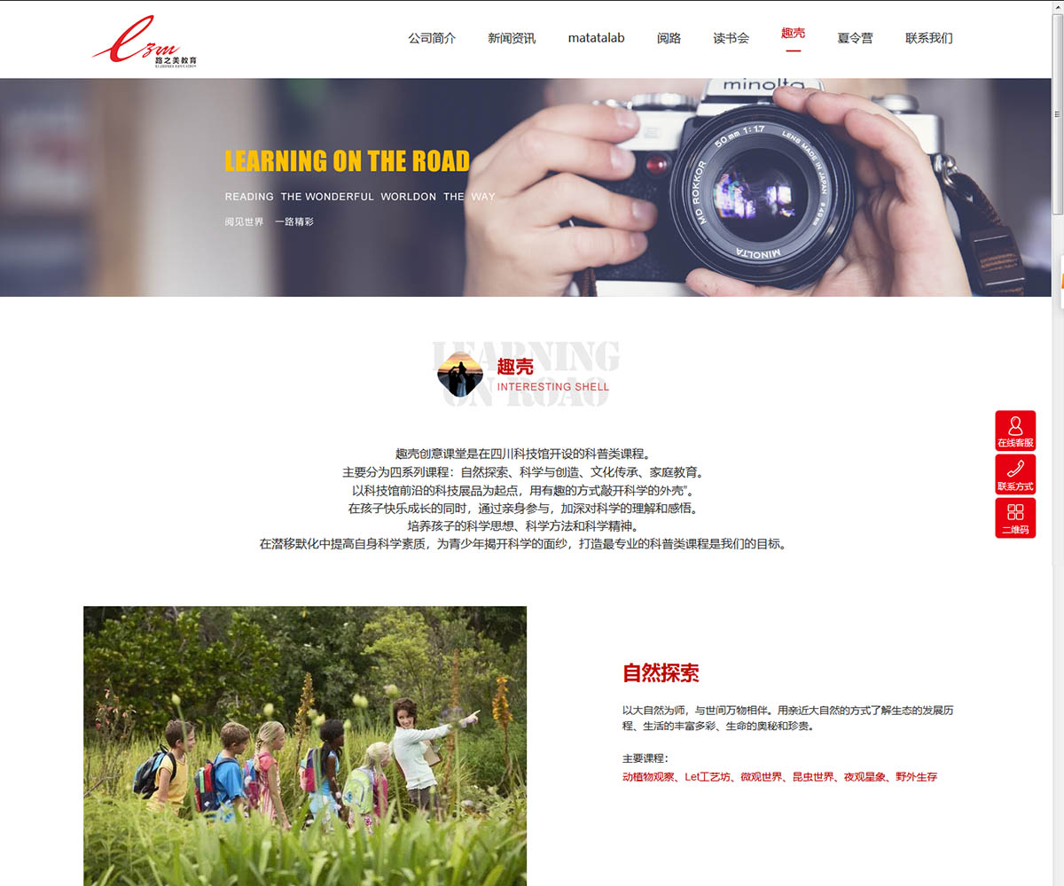 風信網(wǎng)絡響應式建站某教育咨詢有限公司是一家集課程研發(fā)、教育活動策劃運營為一體的教育咨詢公司,將研學實踐、STEAM教育融合是公司的一大特色。